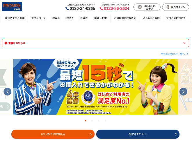 プロミスも先程紹介したSMBCモビットと同じ、SMBCグループの所属する消費者金融です。